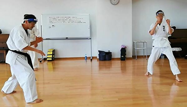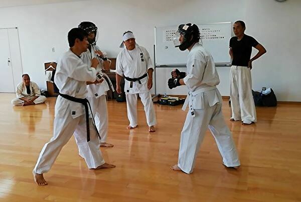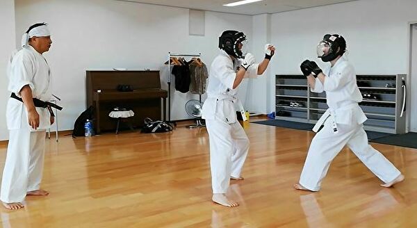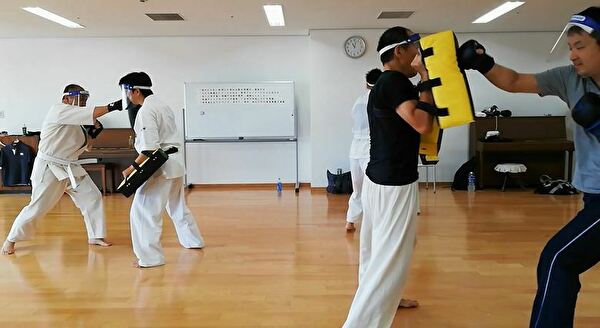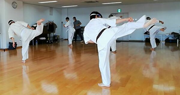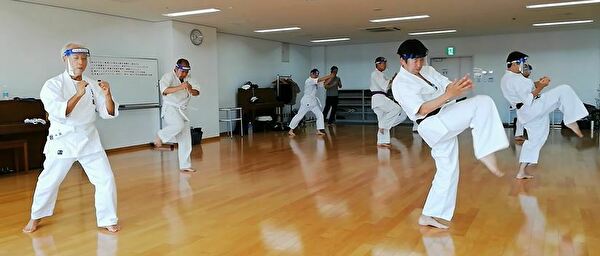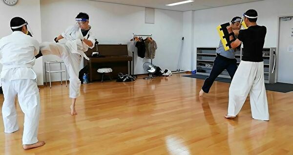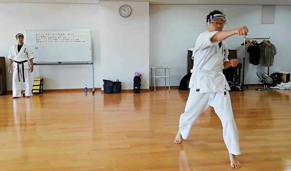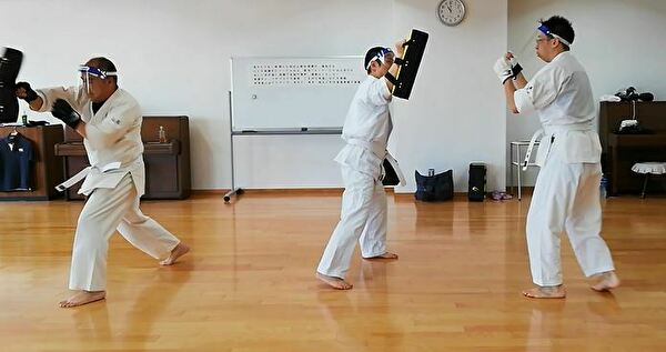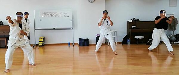 また相手を想定し、常に組手構えを意識した、シャドー形式での移動稽古