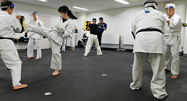 最初の猫足立ち、斜め方向や裏正面への移動した際の前屈立ちの横幅・前後幅が適切か、腰を進行方向に向けて正面に向けれているか、、など先ずは、基本的な部分を修正していって欲しいと思います。