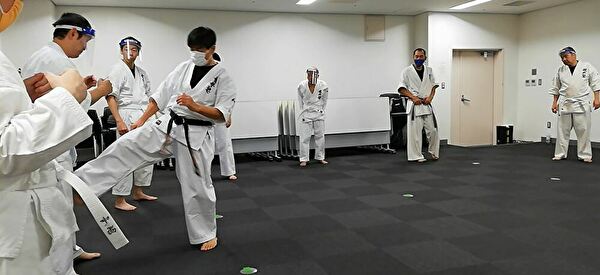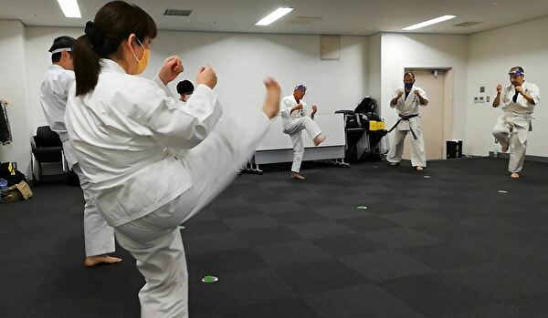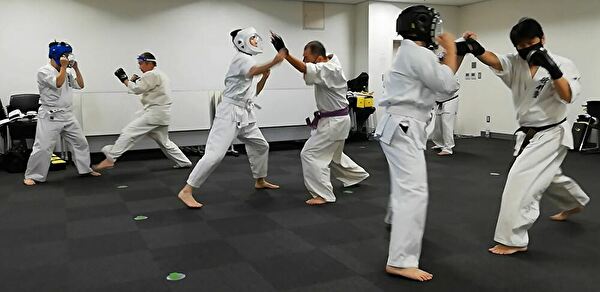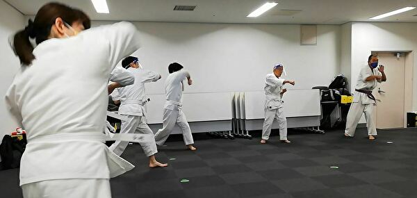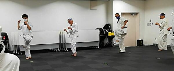 その後、約束組手として、先週と同様、順突き、逆突きを足捌きと手技で防御する練習を行いました。