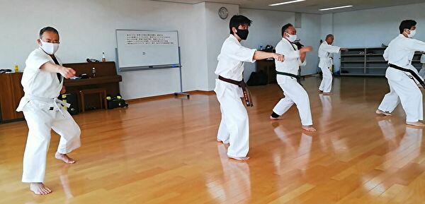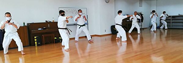 今日は先週に大阪、兵庫にも2度目の緊急事態宣言が発令され、その影響もあってか、8名での練習となりました。昨年春の緊急事態宣言の際は施設も利用出来なくなりましたが、今回は利用させていただけるので有難い限りです。広い部屋に8名ですので、間隔もしっかり取れて飛沫感染対策もバッチリです!