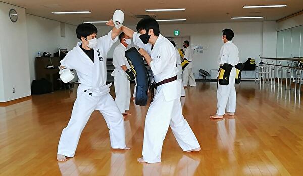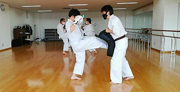 まず、しっかり柔軟体操を行った後にスロートレーニングをしました。身体が暖まった後は、鏡で自分の動きの確認しながら突き、受け、前蹴りの練習を行い、その後、重心移動を意識して、相手の攻撃を交わしてからの攻撃する移動練習をしました。また、これまで練習した内容を混ぜて、シャドートレーニングも行いました。最後は、ストレス発散には最適なミット練習です。今日はコーチとペアになっていただき、ビッグミットでの練習でした。ビッグミットを持っていても、コーチから繰り出される突きと蹴りの威力は半端なかったです。(笑)