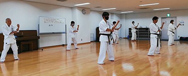 練習の内容も一部が新たとなり、ナイハンチ立ちでの突きや受けを練習。空手道に初めて入門したような気持ちで取り組んだ後は、本日のメインテーマと言えるナイハンチの形をじっくり習ったのですが、今まで習った平安の形とは異なる難しさが潜んでいて、特に普段の練習や日常生活では出てこない動きをとるとき、よく言えば「初々しくなる」ことを悩ましく思う半面、それでもナイハンチの形を習得したいというチャレンジ精神が湧き出てくる自分がいます。