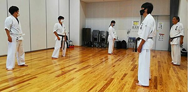 今回は、前回、参加されていたYSさん、KBさんが欠席ですが、塾長、芦尾先生も参加され、柔軟性ナンバー1のNKさん、出席率ナンバー1のUDさんを含め、5名での練習です。