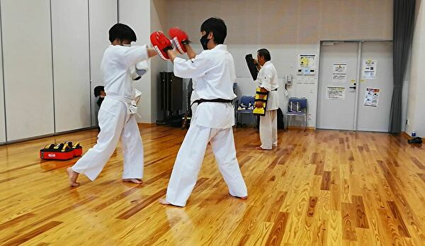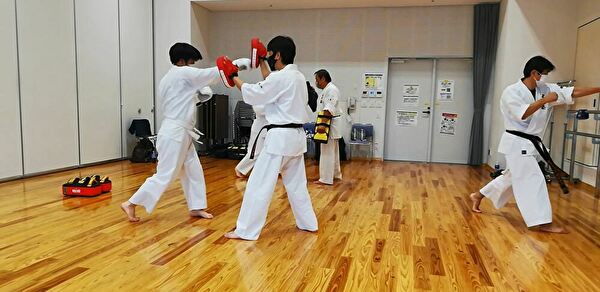 準備運動、入念にストレッチを行った後、スロトレ、基本、型(ナイファンチ)、アイソメトリック、ミット練習と一通りの練習をしました。