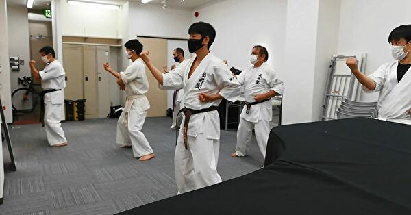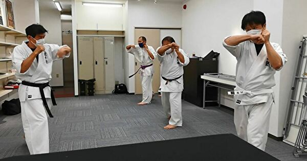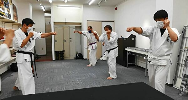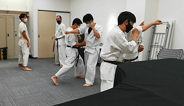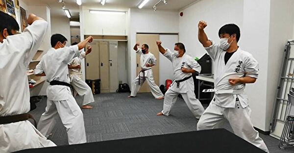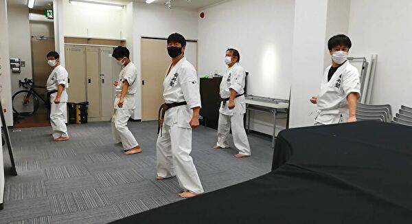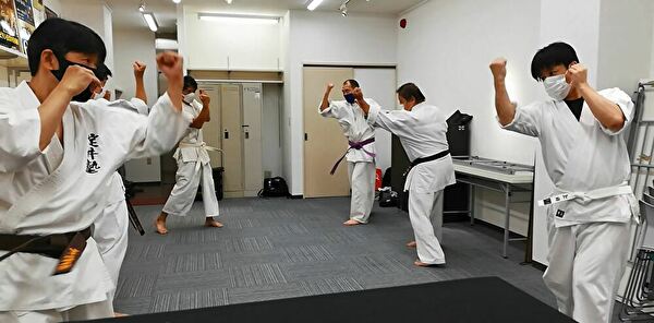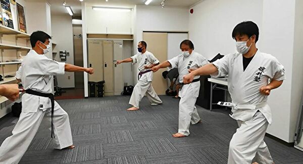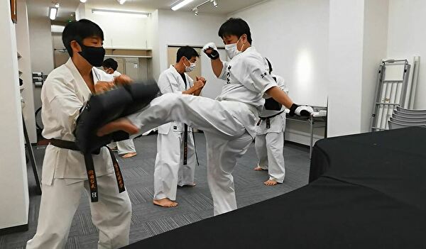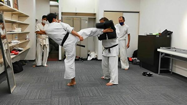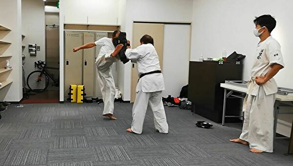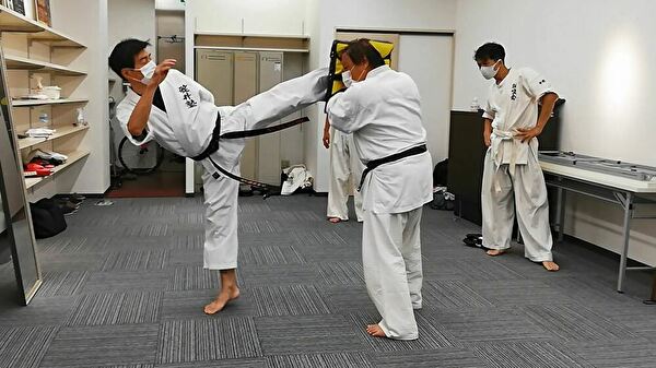 練習後、塾長、芦尾師範が「バシッ!」と快音を響かせ、威力のある上段回し蹴りをお手本として見せてくれました。