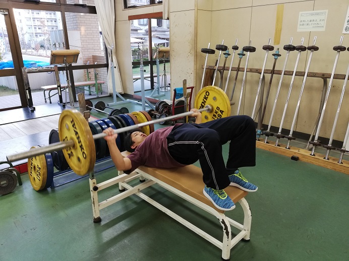 一時間のトレーニングですが、ベンチプレスを集中的にやりました。
