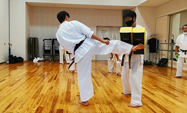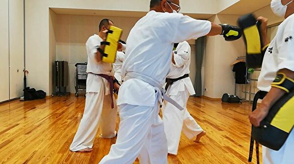 塾長も見本で蹴ってもらいましたが、いつもながらの強力な蹴りを受け、塾長やKBさんの様な強力な蹴りを放てるように、なりたいものだと、思いました!!