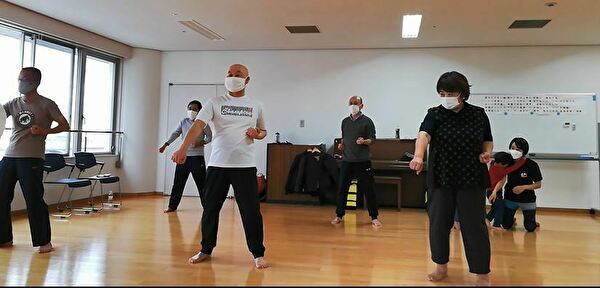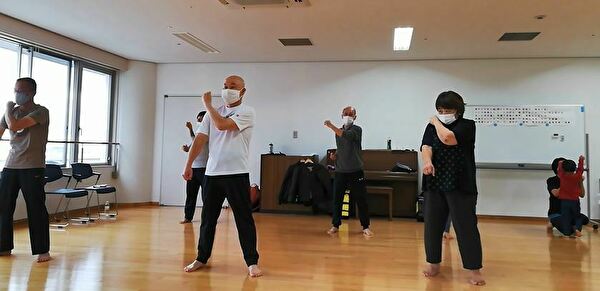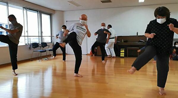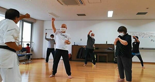 準備体操から基本の突き、護身技、コグニサイズの全体練習。