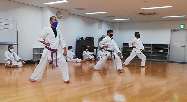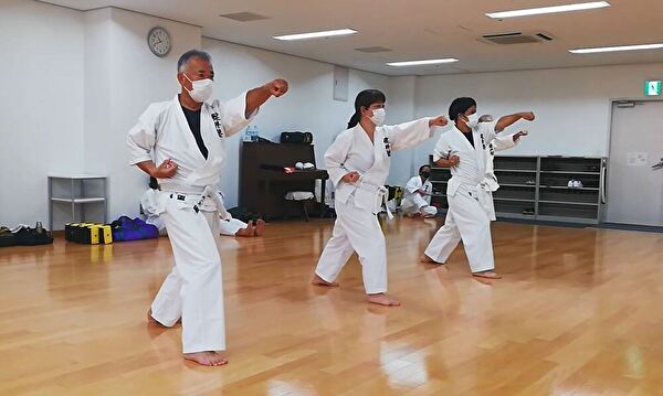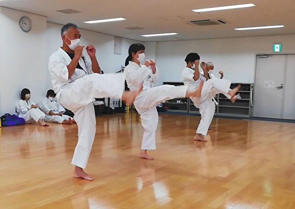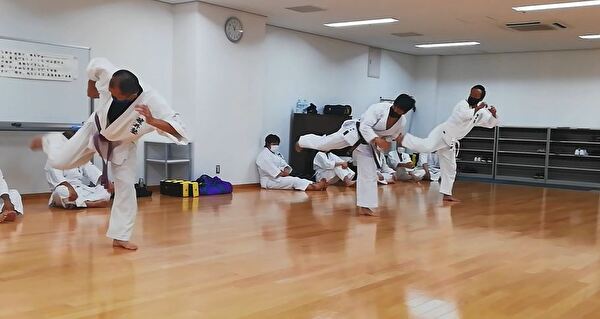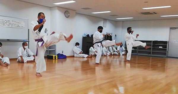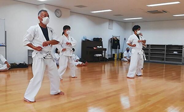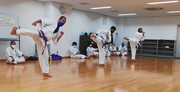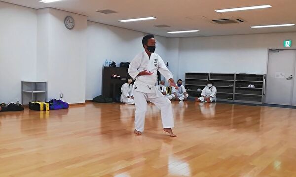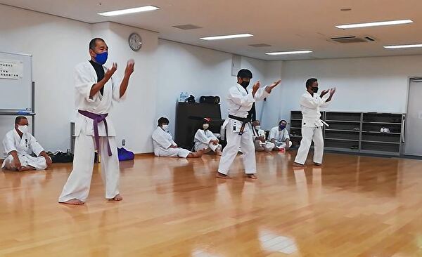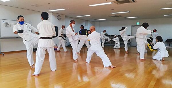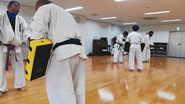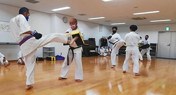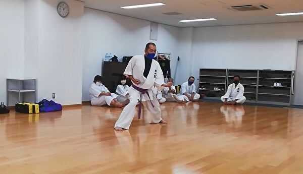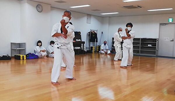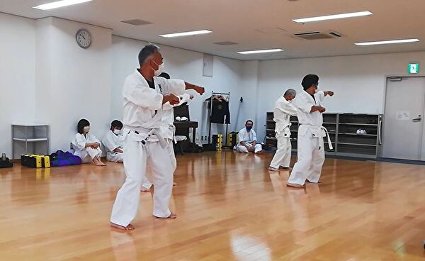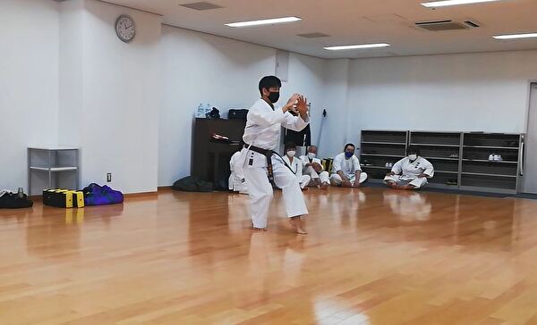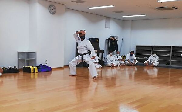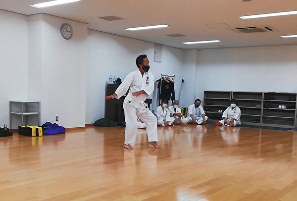 前半は突き、受け、蹴りの基本技、ナイハンチの型、ミット打ち、後半は前半の内容に加えて、型は難易度の高いバッサイダイ、90秒のミット打ちまでありました。