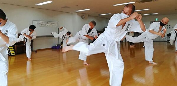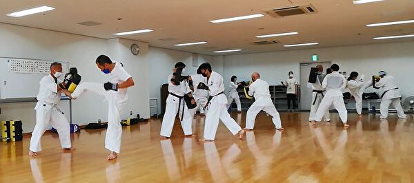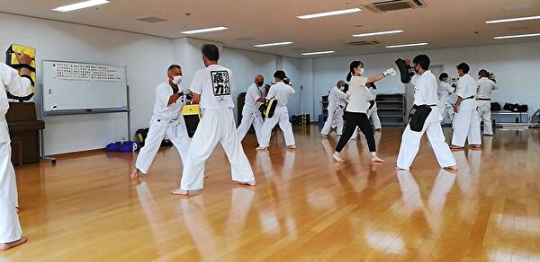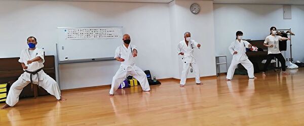 ナイハンチ揃ってきました!(YNさんより) 本日は9時からのスタートで、16名での練習です。 基本.スロトレ.蹴り.ナイハンチ(型).ミット練習です。 こまめに水分補給をしながらの練習です。 ナイハンチ(型)は、みんな揃ってきて嬉しいです! これからは、相手をイメージしながら動くようにしていかなければと思っています。 今日もいい汗かきながら、笑いありで楽しく練習出来ました!