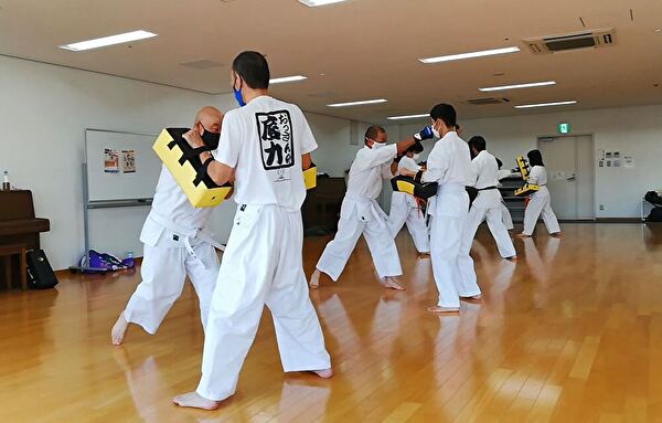 ストレッチ、脳活脳トレ、整列しての重心移動からの攻め、久しぶりのナイハンチ、ミット打ちで、汗を流しました!