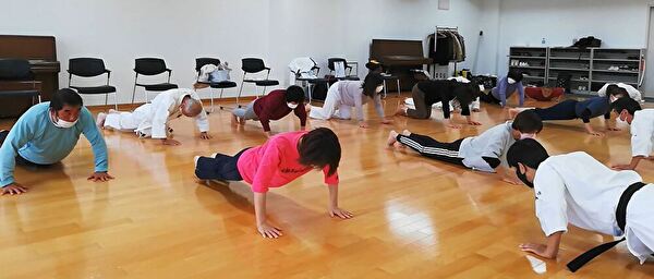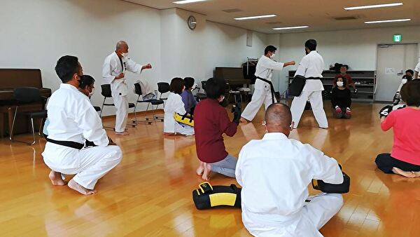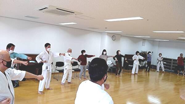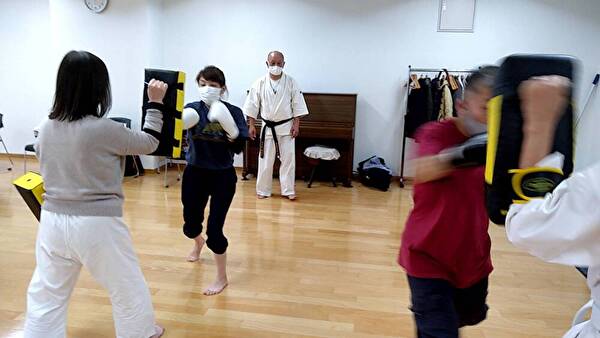 参加された方は、普段運動する時間が取れない忙しい世代でしたので、怪我の無いようにストレッチで十分身体をほぐし、当会でいつも実施しているスロトレの後に、空手の基本動作の突き・蹴り、脳活空手コグニサイズ、ミット打ちのメニューに取り組まれました。