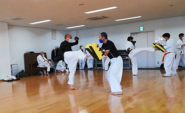個人的には普段のナイトクラスでは行う機会が少ない、鏡を見ながらの形の練習、組手の際の指示出しなどを特に意識してみました。