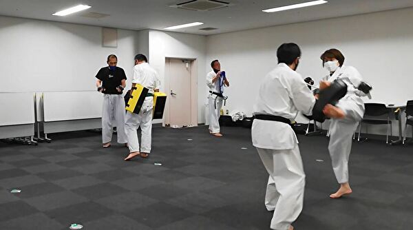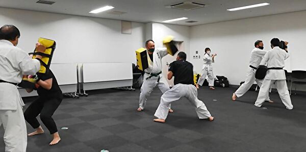 基本の後、ナイファンチ、ミット練習と当会の標準メニューをこなしました。