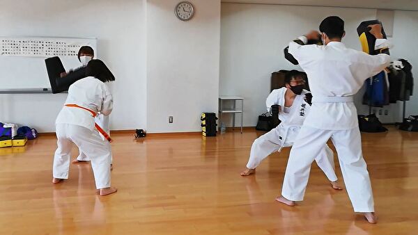 後ろ蹴り、回し蹴り、後ろ回し蹴りはなかなか難しく、いつもフラフラしてしまいます。