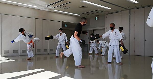 練習時間は他の会場よりも長いため、通常のトレーニングや練習に加え、中段の突き・フック・アッパー、膝蹴り、後ろ回し蹴りを教えていただきました。