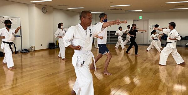 暑くも寒くもなく、ちょうどよい気候の中、体験参加のお二人を含む、15名での練習でした。まずはいつも通り準備運動から。私は入会して7カ月経ちましたが、毎回の念入りな準備運動のおかげで肩甲骨が柔らかくなってきた気がします。ただ、股関節が相変わらずで股割りが苦手です。
