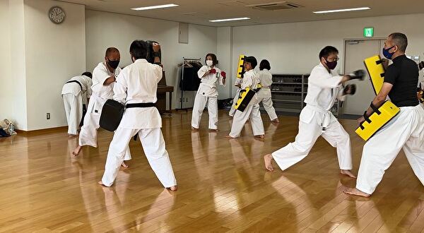 突きの練習の後は蹴りの練習。蹴りでは10種類の蹴りを連続でこなすメニューがあり、やっていて楽しいのですが、単体でできていることが連続でやるとなかなかスムーズにできません。それでも前よりはましになったかなと自分で思うようにしています。