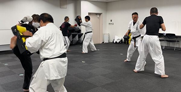 ゆっくり着実に!!(NKさんより) 今日も柔軟からのちょこちょこ走り続けてスロトレ何時以上に腕立てが、しんどくてカウントが皆さんゆっくりだったように感じました。お約束のKBさんのゆっくりカウントが後半、早かった!! 最後は笑いが出る程、辛かったです(笑) ナイハンチをしっかり行い、今日は紅一点だったので、ミットを師範に足の運びから教わりました。とても動き易くなり、安定した蹴りに繋がったと思います。これからも気をつけてゆっくり着実に! を目指します‼ 身体に気をつけて頑張っていきましょう♪ 今日はありがとうございました!!