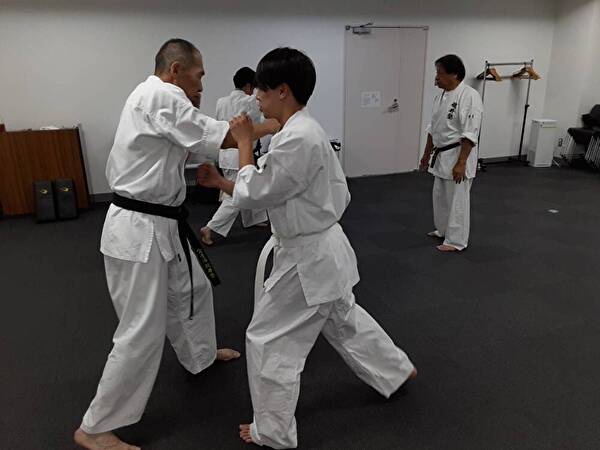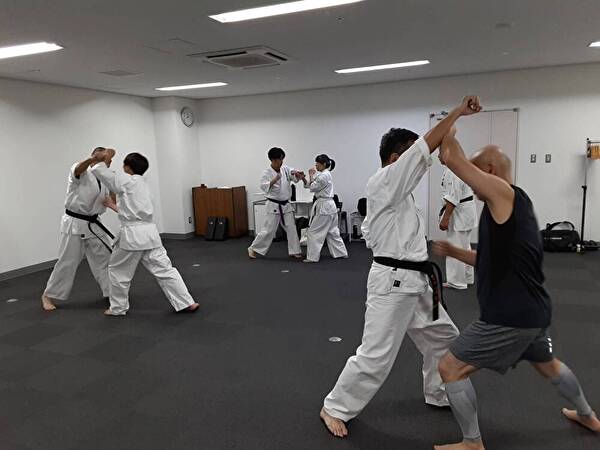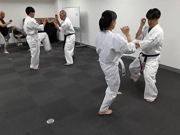 水分補給も休憩も、各自のタイミングで無理のないペースで参加できるのが健康空手の碇井塾!