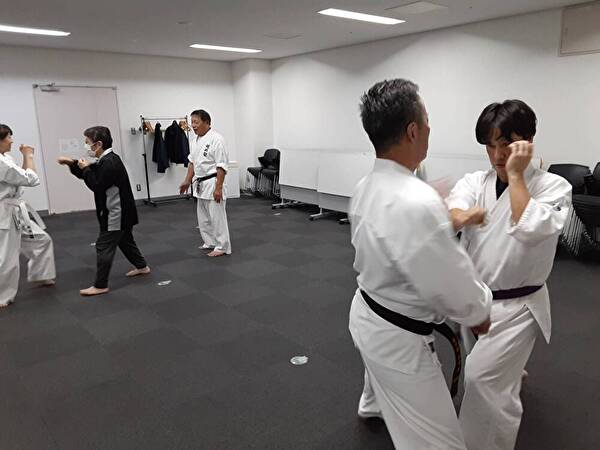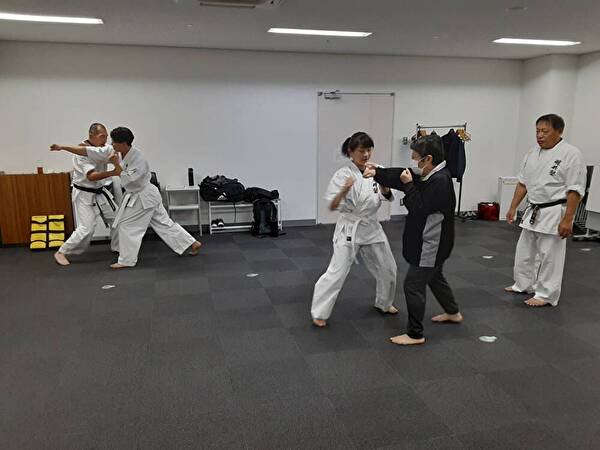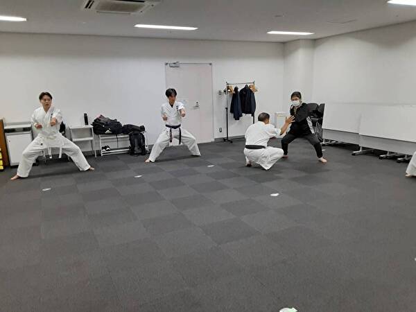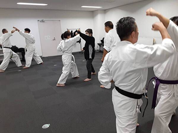 前屈立ちでの上段突きに対する上受け、組手立ちでの逆突きに対する躱しのステップでの中段突きを練習することで、目の前の相手が攻撃を起点として、安全なポジション取り(躱しのステップ)を行い、そこから防御(=受け)、その後の反撃を行い、相手の攻撃に対しての対処を身体に覚えこませる事を目的とします。