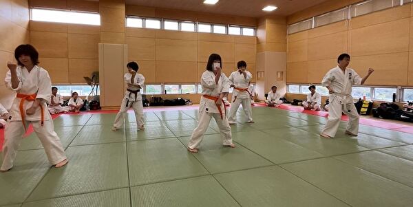 武道場での練習が「稽古度」が上がり、実戦的な護身が学べる「約束組手」がメニューに加わり、初めて新しい型「抜塞大(バッサイダイ)」を練習生全員で習うという豪華な内容。