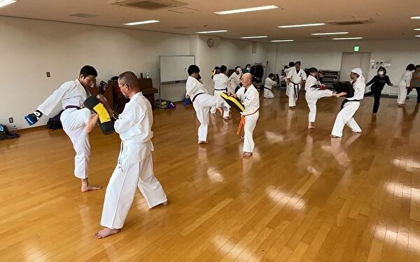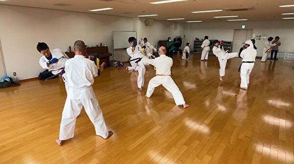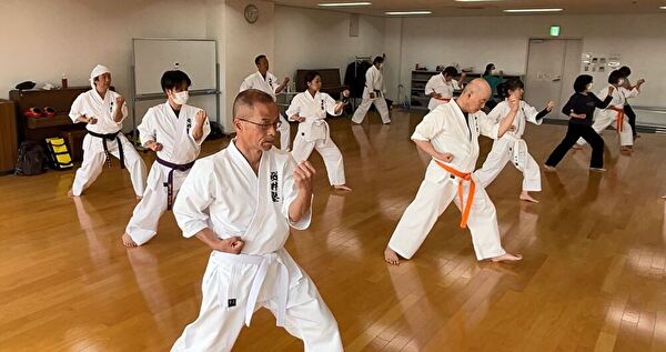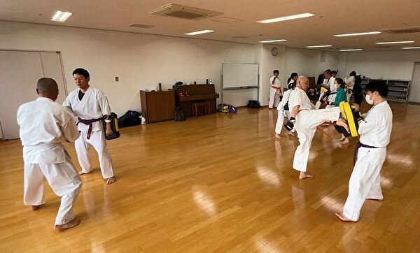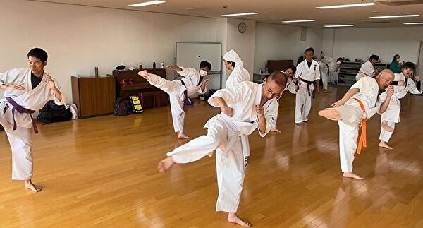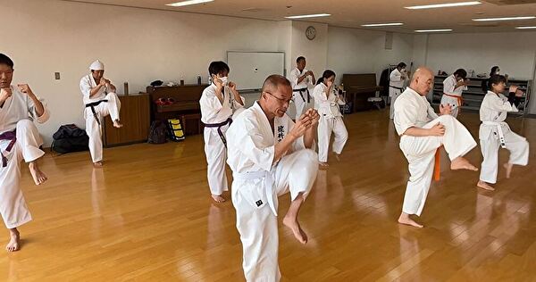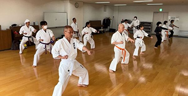 四股立ちでの突き練習は太ももがプルプルしてきます。