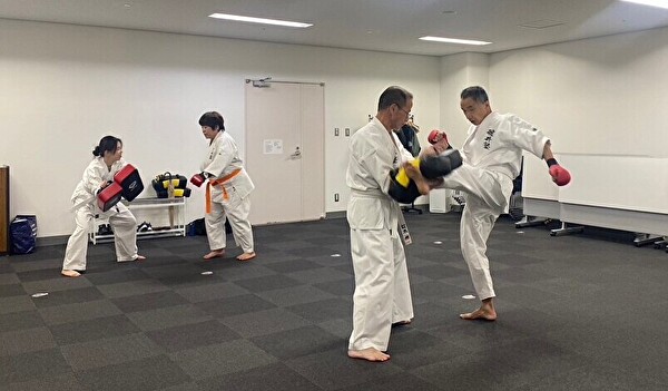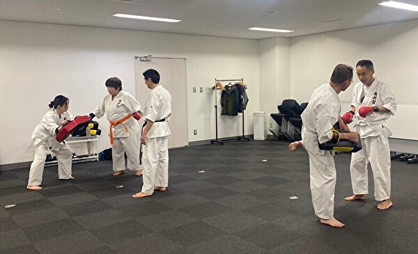 横向きに蹴ってみると実際あまり足が上がらないこと、後ろ蹴りは前に倒れるようにしつつ後ろの相手を見ながら蹴る、というのをリズムよく行うのが難しかったです。