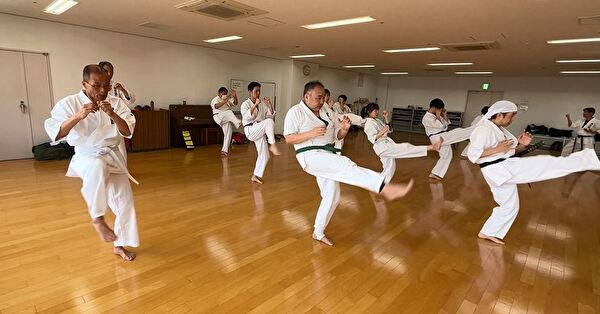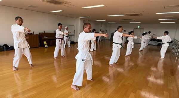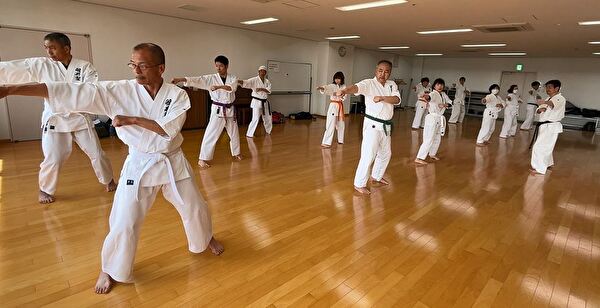 幾つかの型を 反復練習の後 号令のもと通しで2回 列ごとに個々で…テストでもないのに何故か緊張。まだまだ 身体が覚えていない 《おばあ》の域に到達には長い道のりです。