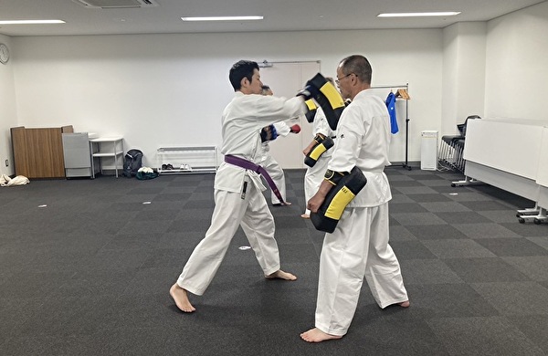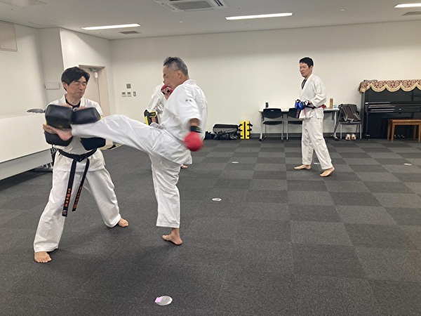 本日のミット練習での「前蹴り」は、前に出している足で蹴るために後ろの足で1歩前に出るやり方を習いました。毎回の練習で全く同じなのではなく、色々新しいやり方を教えていただけるので楽しいです。