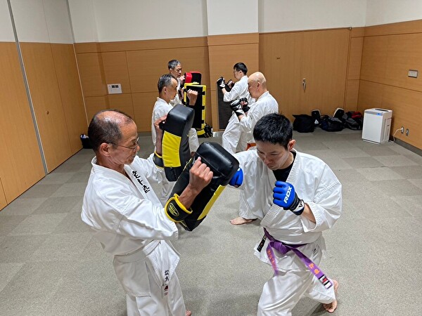 「押忍!」とは挨拶でもあり、返事でもあり、技を出しながら声を出すことでパフォーマンスをアップさせる効果あり、と様々な意味を持ちますが、パニックになったときの押忍は「気持ち(心)を落ち着かせ冷静な判断ができるようになる」ということを塾長からのお話で聞き、私は、緊張やパニックのときの押忍は気合で誤魔化すとしか思っていなかったので、イザという時に声を発することが出来る大切さと押忍!の奥深さを改めて感じました。