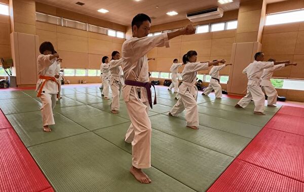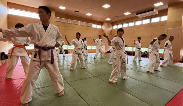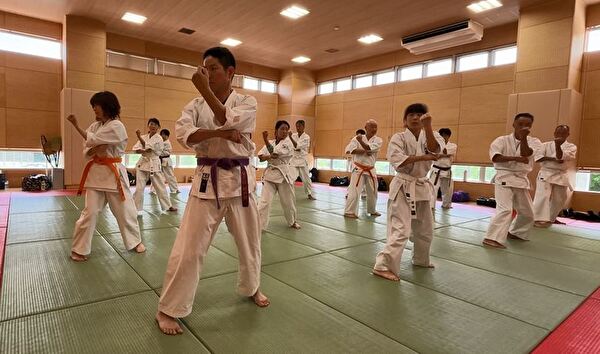 次にナイハンチの型練習、受け・突きの練習に続きます。突きではストレート、フック、アッパーの三連続突きを練習しました。