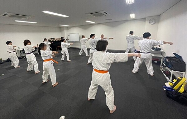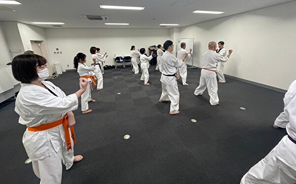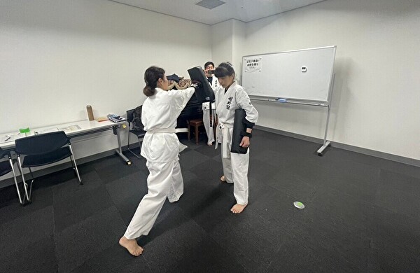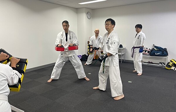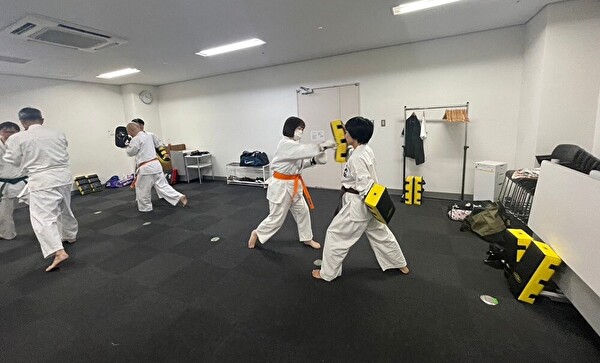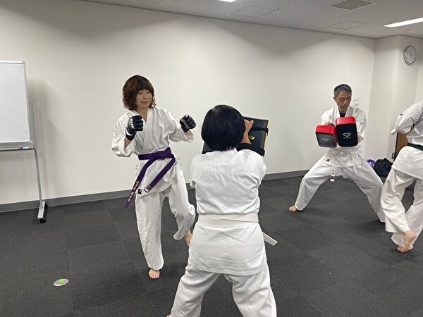いつものようにしっかり準備運動と筋トレをしてひと汗かいたあとは、「護身に役立つ基本的な形」 を教わります。