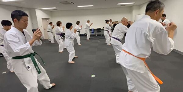昇格・昇級試験から約1か月たち、新しい緑色の帯を締めて2度目の練習です。