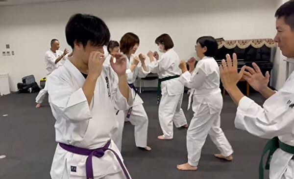 ペアになって相手の動きに合わせて重心移動する練習では、後ろへの移動が少し遅れてしまい、まだまだです。
