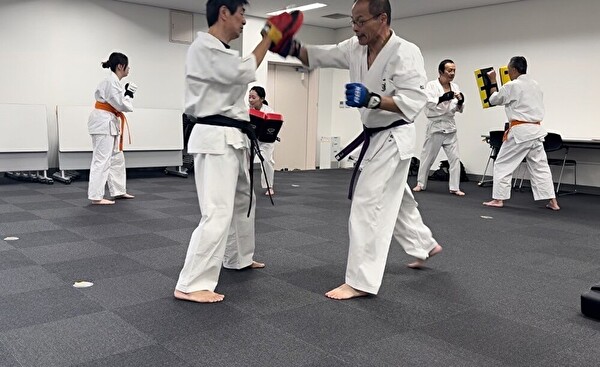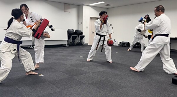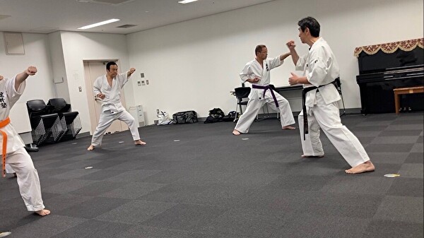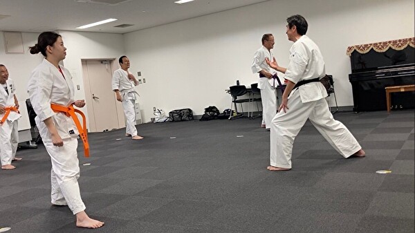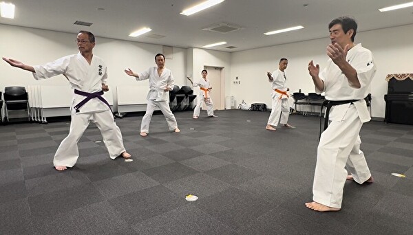 基本練習では、突き、受けを丁寧におさらいしたあとナイハンチ!